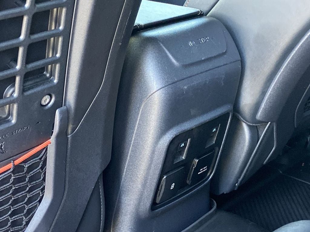 The Bronco Raptor's interior is a masterful blend of style and functionality, with Marine Grade Vinyl Bucket Seats, a Leather Shift Knob, and the stunning Interior Carbon Fiber Pack 6. This SUV is designed to accommodate your active lifestyle, with ample cargo space and a versatile split-folding rear seat.