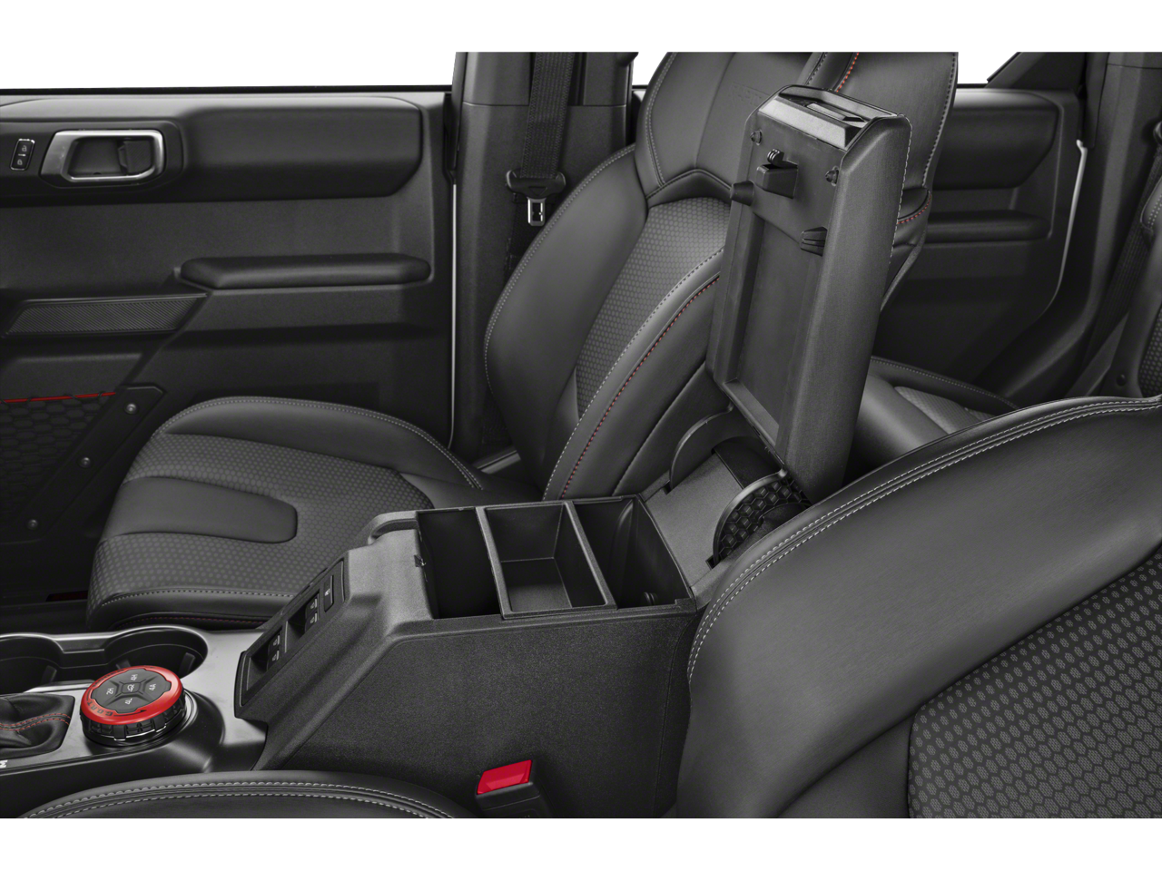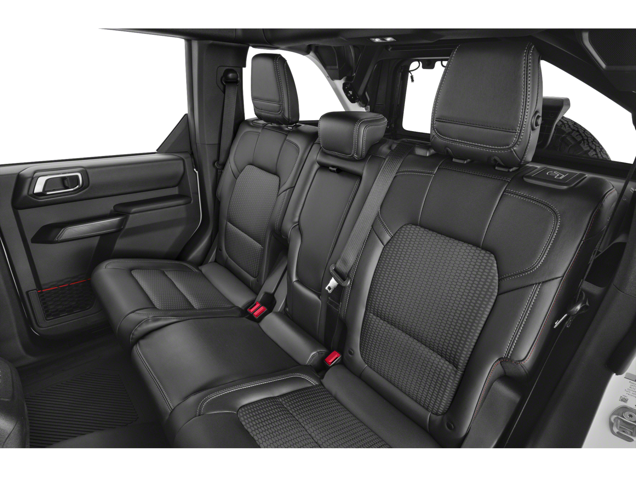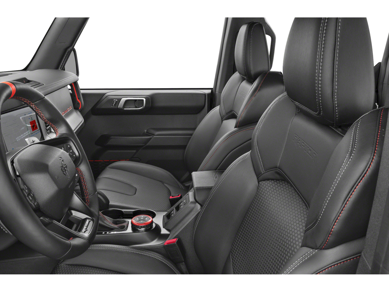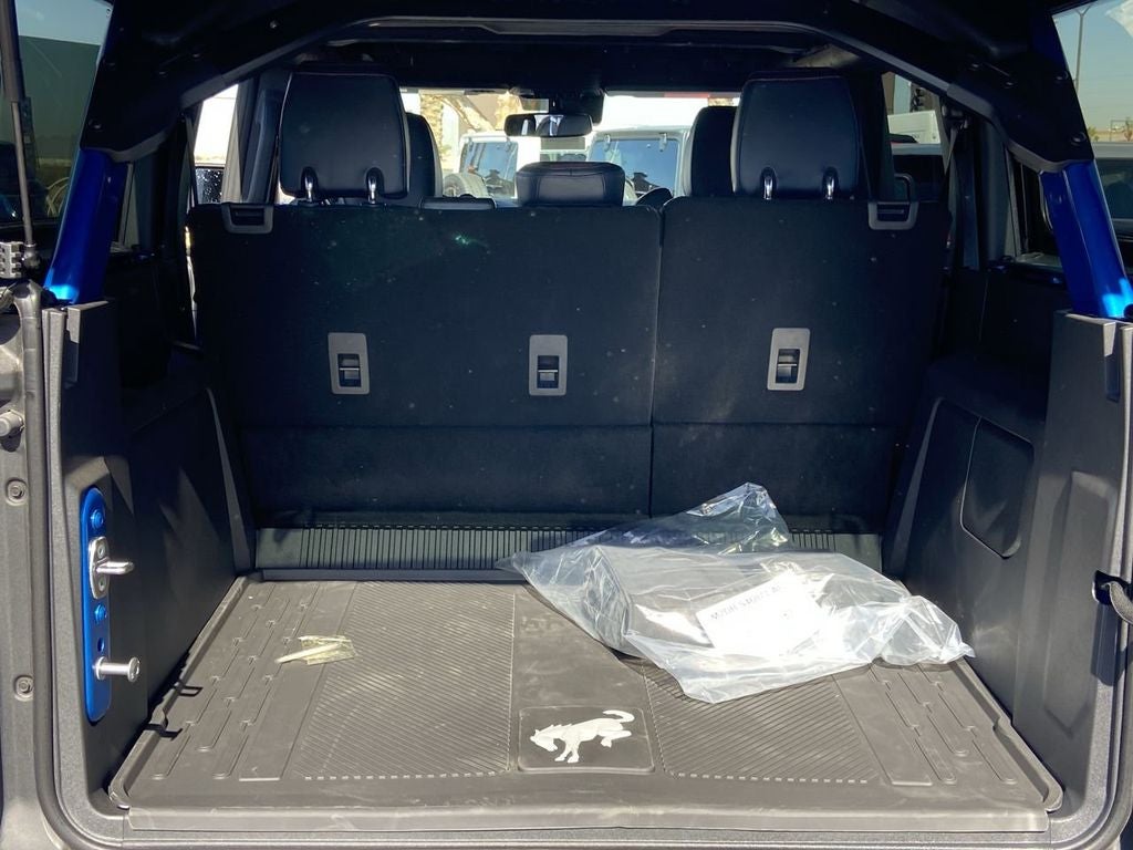 Step inside and be captivated by the Bronco Raptor's luxurious interior. Sink into the supportive, leather-trimmed bucket seats and take in the stunning Blue and Black Onyx color scheme. The 10-way power driver's seat and 8-way front passenger seat ensure optimal comfort, while the second-row armrest with beverage holders and the MOLLE strap system provide added convenience.