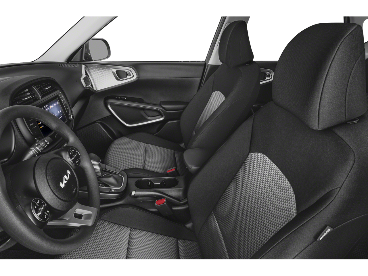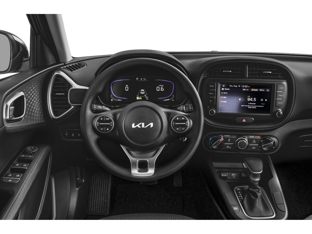 The Soul LX's thoughtful design extends to the interior, where you'll find a wealth of user-friendly technologies, including the AM/FM/MP3/HD Audio System, Steering Wheel Mounted Audio Controls, and Dual Front Airbags. The Woven & Tricot Cloth Seat Trim adds a touch of sophistication, while the Carpeted Floor Mats and Illuminated Entry create a welcoming atmosphere.